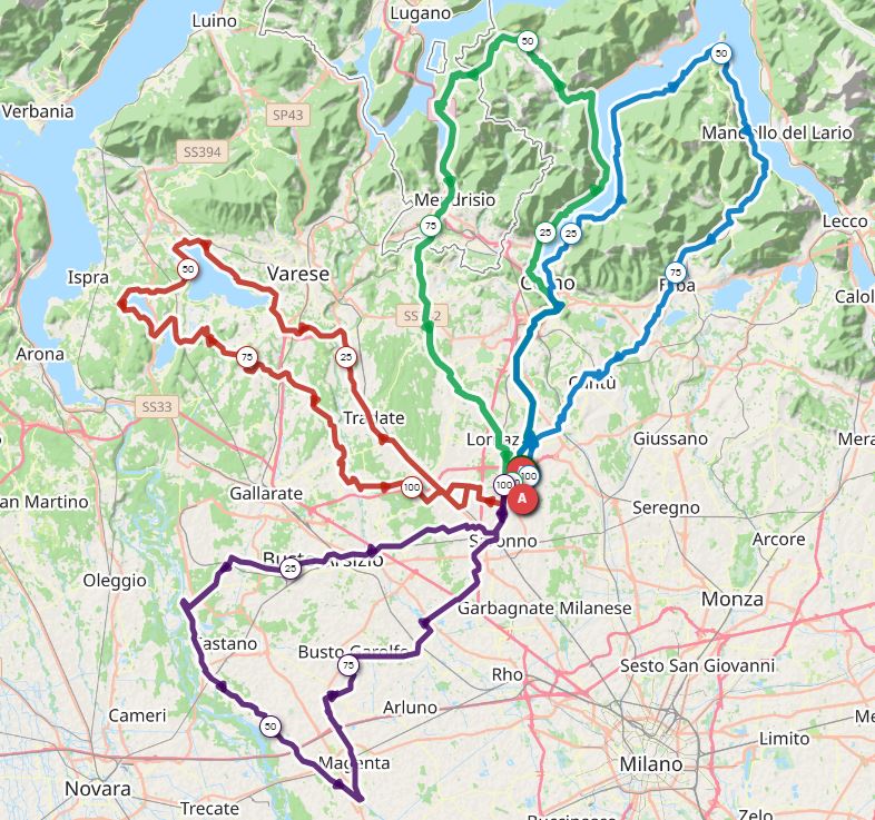 I percorsi di 200 km, 300 km e 400 km sono validi per il Campionato Italiano ARI